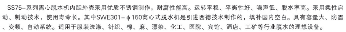 脫水機系列的參數: