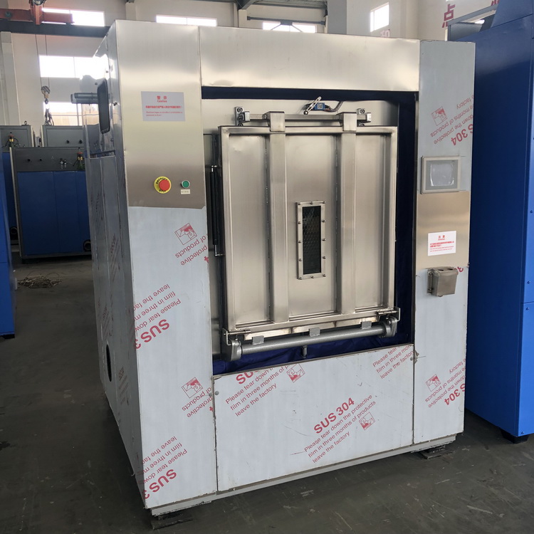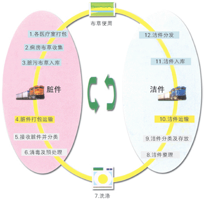 首先,從設備上采取最先進的衛生隔離式洗衣機。背靠背的兩道機門,使污染布草的裝載和潔凈布草的卸載從不同的門進出,從源頭上避免了交叉感染。